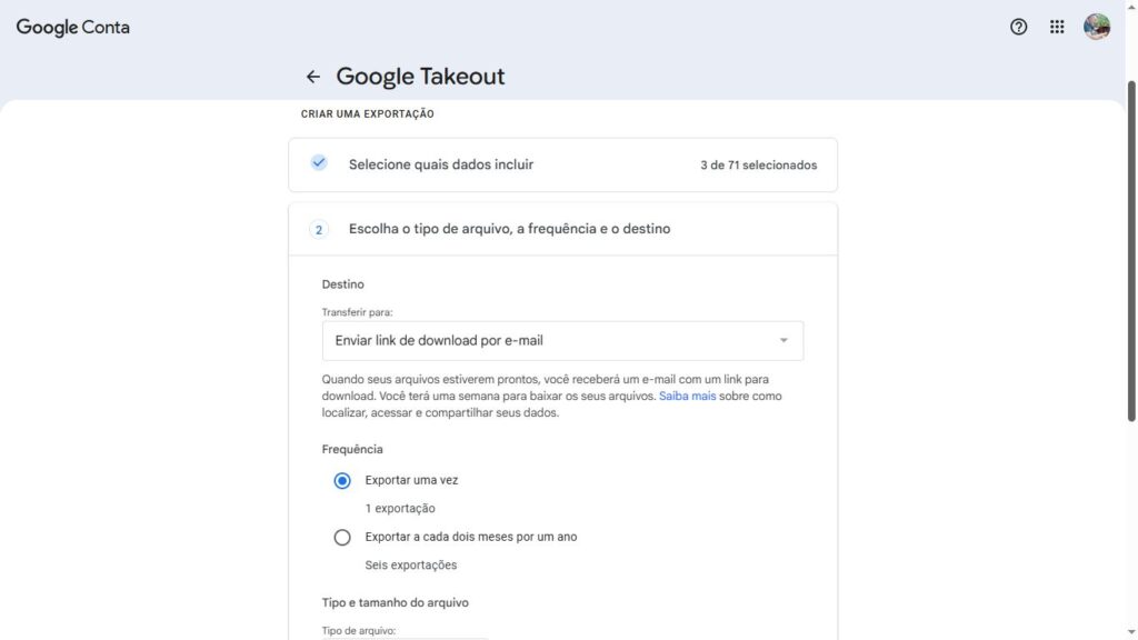 1. Acesse o Google Takeout: